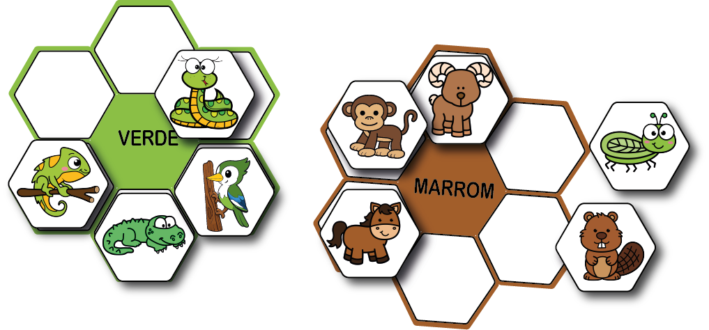 5 Cards “Colmeia” de Categorização: Bases coloridas para o encaixe das peças.