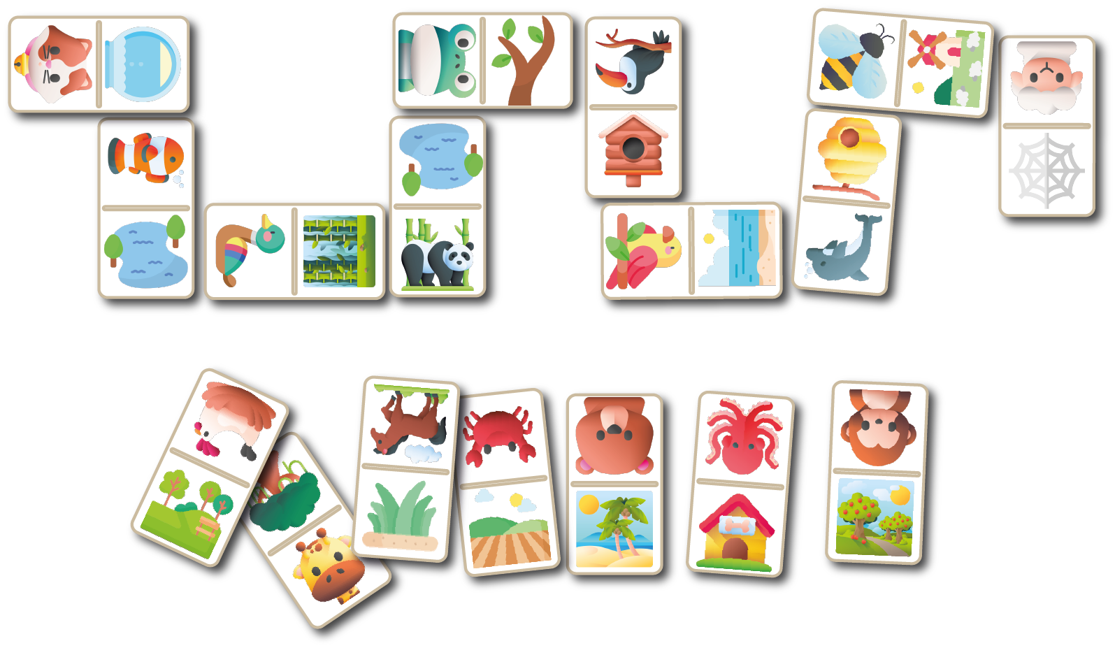 Imprima o material duas vezes. Espalhe as imagens na mesa. Ao sortear uma figura, os jogadores devem correr para encontrar a cópia idêntica. Quem achar primeiro e falar o nome da figura corretamente ganha a carta. É uma excelente atividade para trabalhar a agilidade e a memória visual.