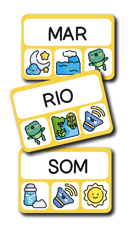 • AMARELO – Palavras Monossílabas com Sons Complexos: Este nível foca em palavras monossílabas com sons mais desafiadores, estimulando a compreensão auditiva e a identificação de sons complexos.